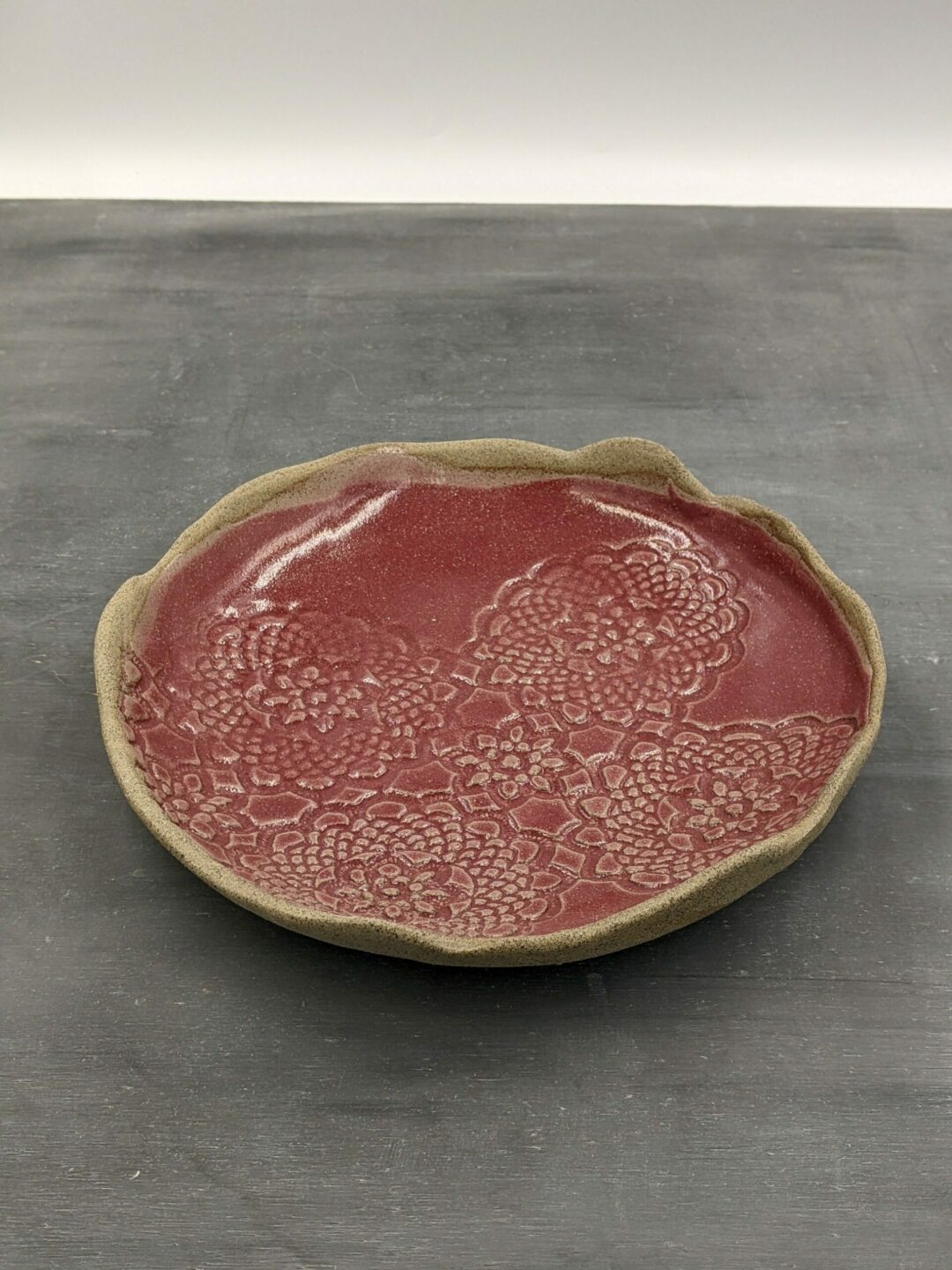 Handmade ceramic platter glazed in red colour