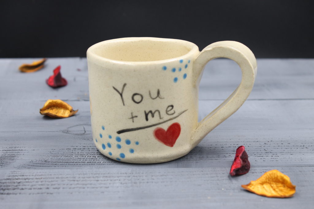 Cat Tale Heart. Handmade Painted Ceramic Mug