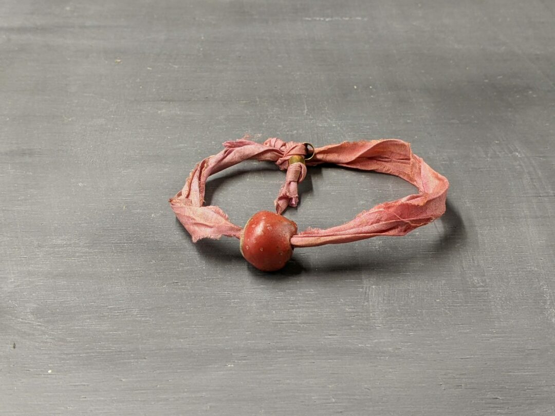 Χειροποίητο Βραχιόλι με Κεραμικές χάντρες δεμένο με Μεταξωτό ύφασμα